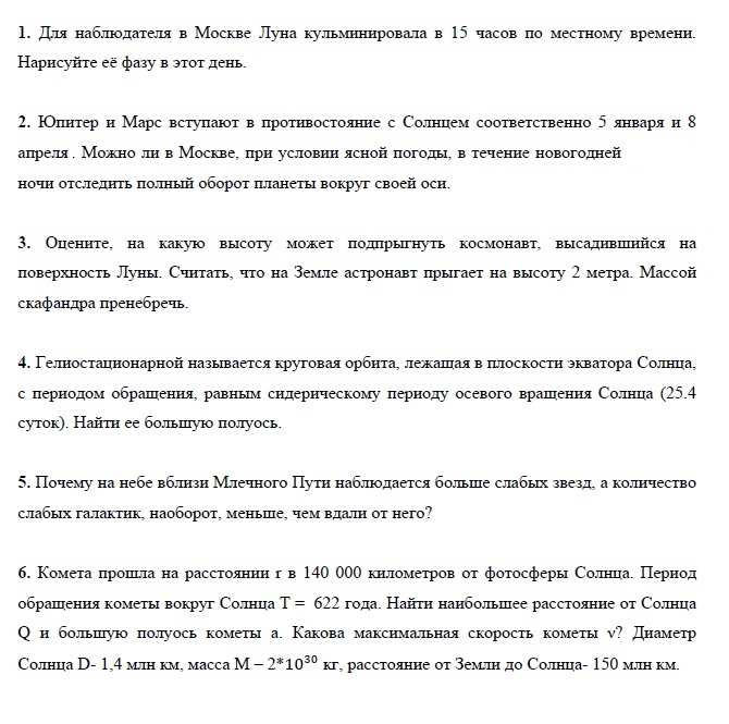 Олимпиадные задания по астрономии для 10 класса